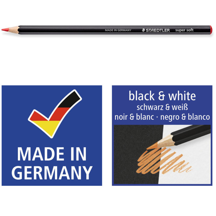 Porta ovunque, grazie alla scatola in metallo, il tuo set da dodici colori super soft, in grado di scrivere sia sulla carta bianca che su quella nera! I pastelli sono in legno certificato PEFC, proveniente da foreste a gestione sostenibile e la mina è super morbida!